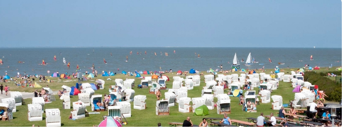 Endloser Sandstrand & Watt: Der weitläufige Sand- und Grünstrand lädt zum Entspannen ein. Bei Ebbe können Besucher auf geführten Wattwanderungen das einzigartige Ökosystem des Wattenmeers entdecken.